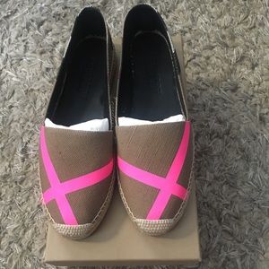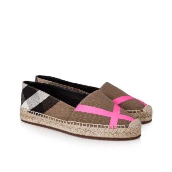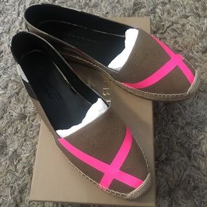 BRAND NEW never worn!!! Burberry Canvas Check with a gorgeous fluorescent pink stripe on top. These pictures does these shoes no justice. These are sold out!!