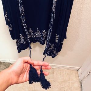 This navy blue piece is so cute! I got it as a gift which was bought from a boutique and just never found myself wearing because I already had one similar. So it’s has never been worn and still has tags! Let me know if you have any questions! Also not the tagged brand just tagged for exposure
