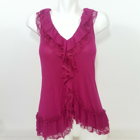 Eyelash Couture Magenta Ruffle Lace Tank Top M