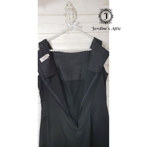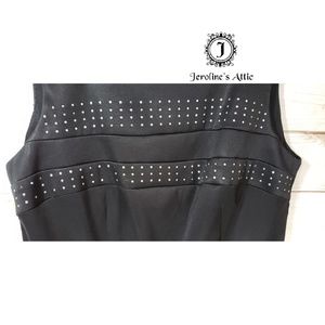 Black sheath dress, gently used, has missing studs in front which are pictured. As as shown, dry clean only.