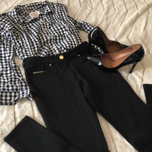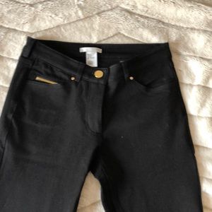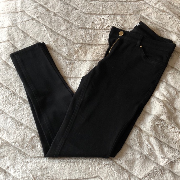 NWOT!👌 These pants present stretchy and jean like but are almost like a jegging material (rayon, cotton and spandex). Gold accent on button and front pocket zipper. I like the snug fit of these pants and the look is very versatile as you can dress them up as business casual pants, or wear them casual. These are a size 2, but as I said they are more of a tight/snug fitting pant.