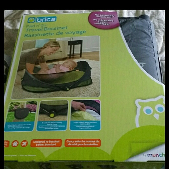Brand new in the box! Brica travel bassinet. Neutral colors for boy or girl (brown & green)