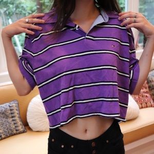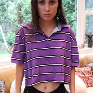 Tommy Hilfiger// Purple and White Striped Polo Knit Crop Top Button Up Embroidered logo on front Size: Large