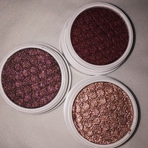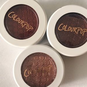 3 never-used eyeshadows from Colourpop. They are all supershock shadows. I got these as part of Colourpop’s holiday palette last year but have never used them.