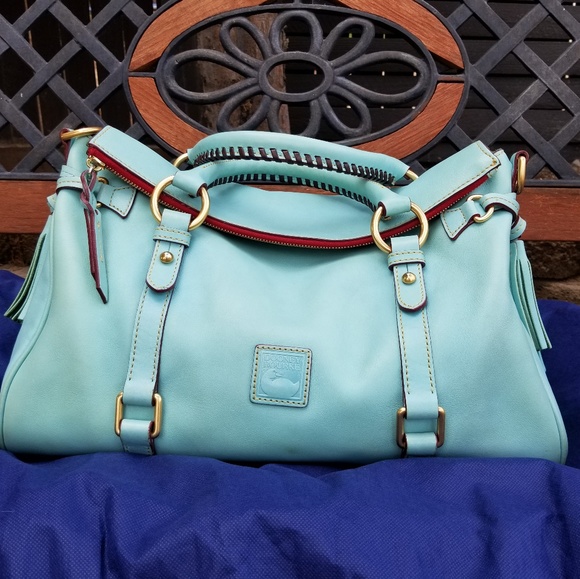 Pre-owned Rare Dooney and Bourke Medium Florentine Leather Satchel in Aqua.