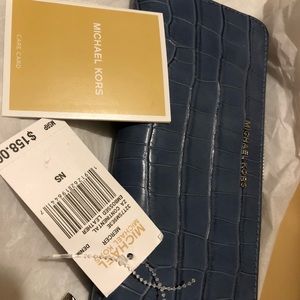 Comes with paper bag practically new used once and keep into my closet. Stuning in powder blue color in crocodile deaign leather.
