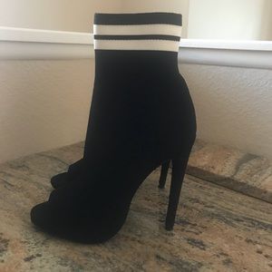 Missguided Sock Booties with Open Toe Like new in box, comes with heel replacement caps in box. Similar to Carli Bybel’s x Missguided collection. Super comfortable and stretchy material! You will be in love!