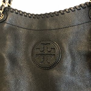 Black Pebbled Leather Marion NS Slouchy Tote