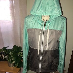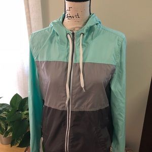 Purchased at ZUMIEZ size large hooded rain coat only warn twice.