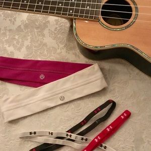 (1) hot pink classic lulu lemon headband, (1) white classic lulu lemon headband, (3) under armor headbands in assorted colors. Comment if you’re interested in splitting up the bundle & feel free to make offers / request discount shipping! I accommodate for my buyers 🧡