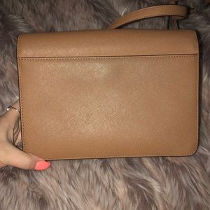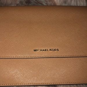 Great condition Michael Kors crossbody only used for about 2 weeks. I bought it at Macy’s. Super cute just don’t find myself using in. Inside is like brand new there is slight blue jean rub on the back you can barely tell. Adjustable strap with gold hardware and chain detail on strap. Smoke free home.