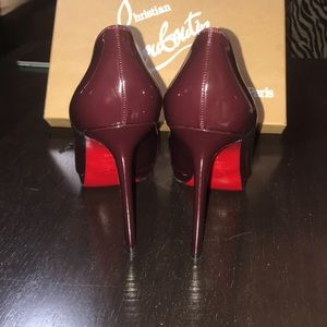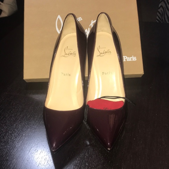 @traciedub good morning! They come with the box and replacement bottom heel. They are like burgundy/wine color the box says lie de vin.