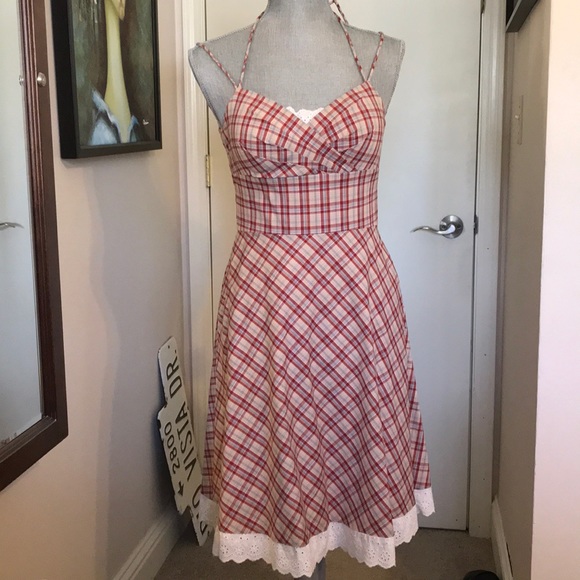 Excellent condition. Super cute 50s style dress but with a twist of plaid and lace.