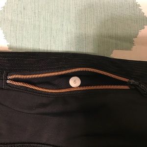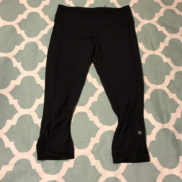 Excellent condition Lululemon Capri Legging. Cute camouflage camo design on bottom and back of pants. Convenient back pocket to stash your valuables. Adjustable tie. Size 6.