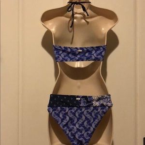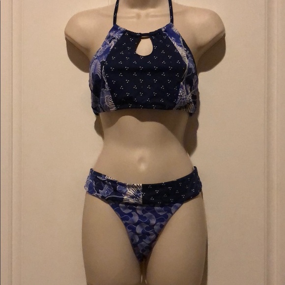 Roxy swimsuit. Worn once. Beautiful blue pattern. Great fit. Very flattering & comfortable. Size L but fits more like a Medium.
