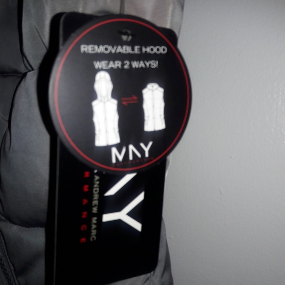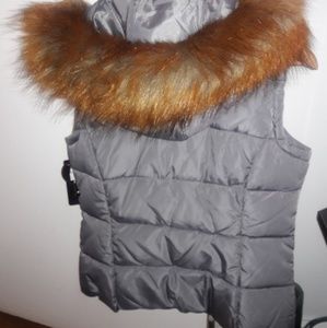 Grey sleeveless removeable faux hood vest