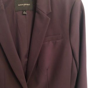 Beautiful banana republic plum women’s suit. Ryan style pants size 6 and matching blazer size medium. Worn once, like new condition. The pictures don’t do this beautiful suit and a justice