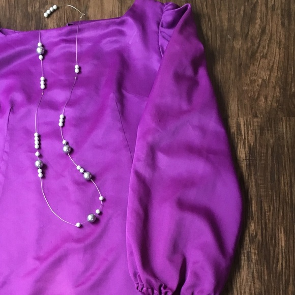 Unique Vintage Mini-Dress, from mid-late 60s. Straight from my mom’s closet, this dress has tucks and curves that make it very flattering and skimming, without being bulky. Great for everyday or special occasions. Has a few small pills, shown in photos, but otherwise great shape. The purple gleams in the light. Measured flat, the dress is: 29.25” long, 17.5” across chest, with 24” sleeves and 2” shoulders. I would say it will fit best on a medium or a slightly chesty small.