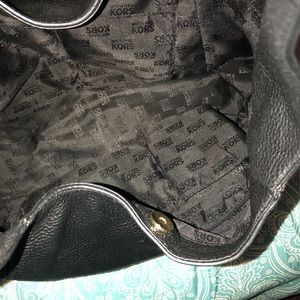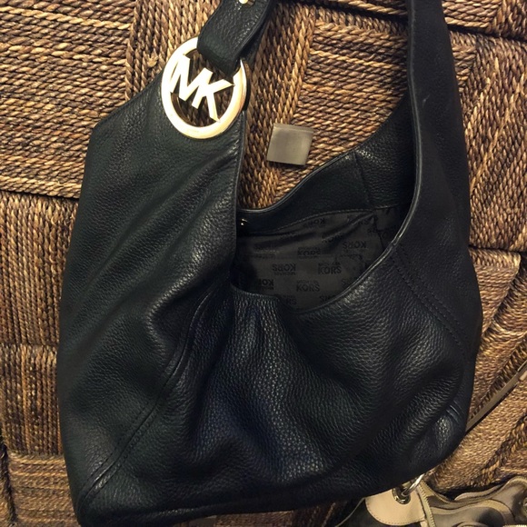 Black with silver MK on the strap. This bag is like new will kept no stains.