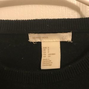 H&M merino wool sweater in black. Scoop neck. Worn once. new condition. Size small but has good stretch to it.