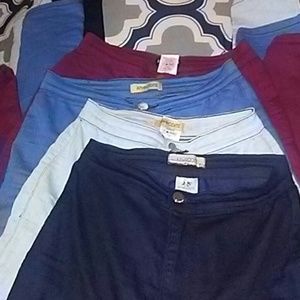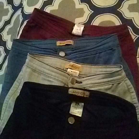 4 pairs of highwaisted jeans from fashion nova. Dark blue, Blue, Burgundy and Light Blue these have been worn a couple of times. I have gained weight so Im selling. Some pulls but can easily be cutt