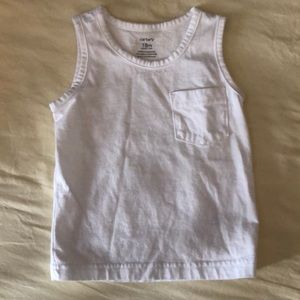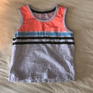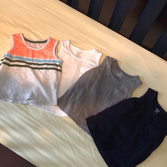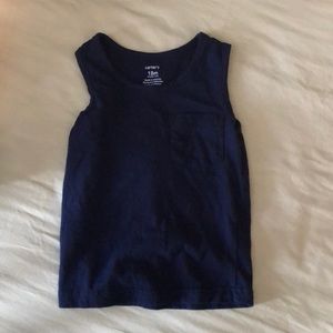 Set of 4 Carter’s tank tops with pocket. Navy, white, gray, and striped. No stains.