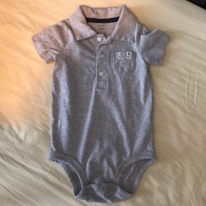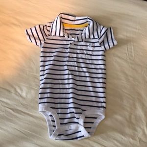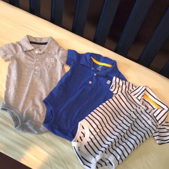 Set of 3 polo onesies. Washed but never worn. Royal blue, white and navy striped, and gray.