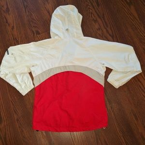 Columbia windbreaker jacket. Lightweight. Long sleeve. White and red.