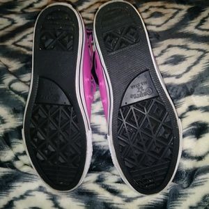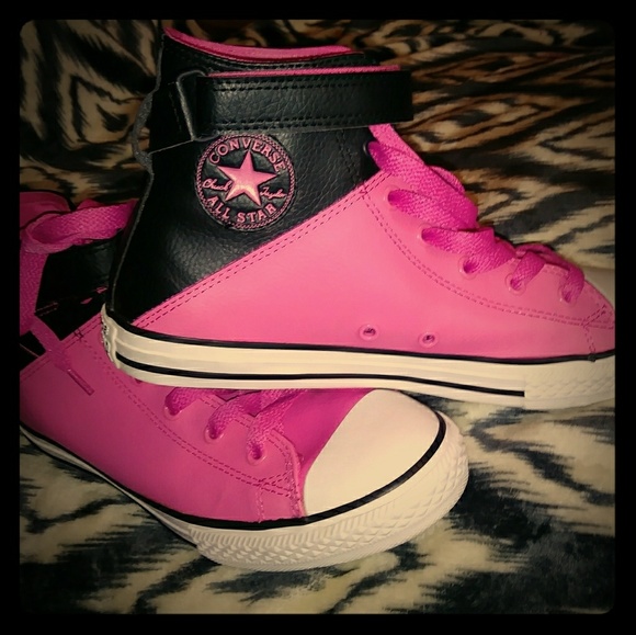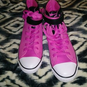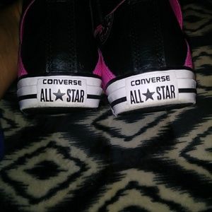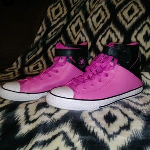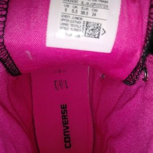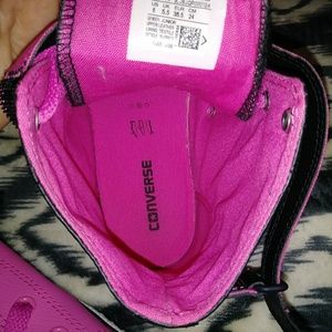 Size 6 in men's I wear a 9 1/2 was a perfect fit.Willing to take reasonable offers.Pink and black leather high top chucks. I wore them only once. In very good condition.