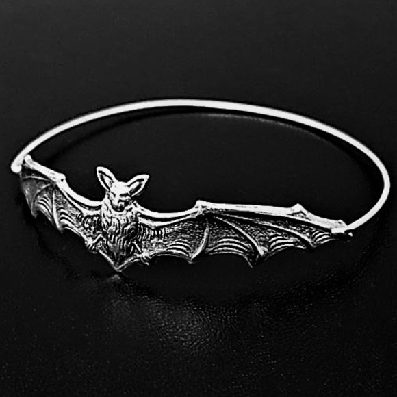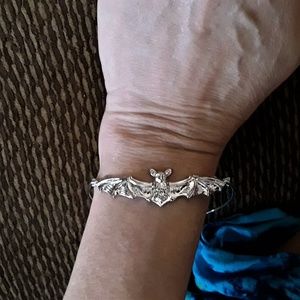 So adorable!...Just in time for Halloween, or just cause your Goth like me...Silvertoned bat bracelet, slips over your hand like a bangle. Hypoallergenic...LAST ONE, FINAL PRICE DROP!