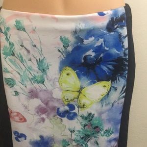 Pretty Forever 21 pencil skirt, designs on the front and all black on the back side