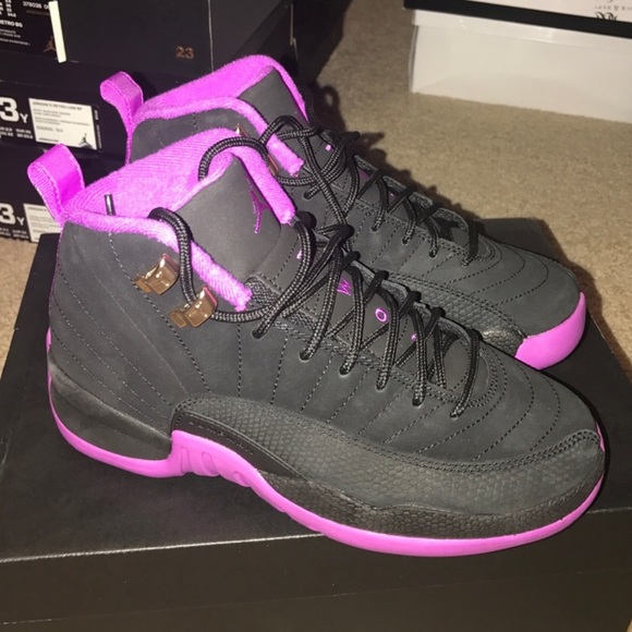 NEW JORDAN RETRO 12. SIZE 4Y. BLACK / HYPER VIOLET. BOX INCLUDED. NO TRADES.