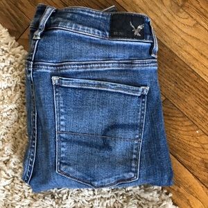 These jeans are High rise jegging, super stretch, medium wash, size 4 regular in like new condition
