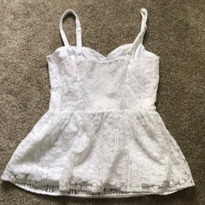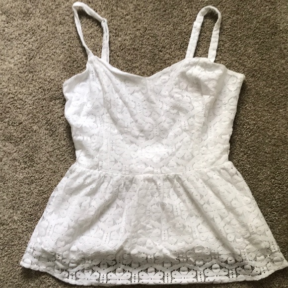 White lace tank with adjustable straps and side zipper. No stains. Gently used.