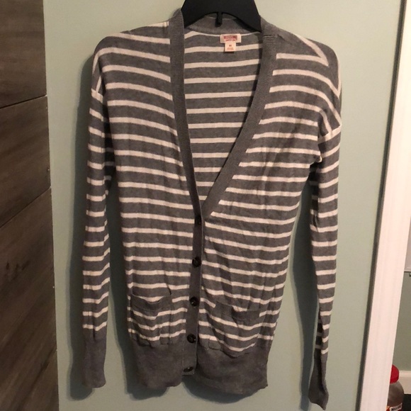 Mossimo Supply Co. Gray and white striped cardigan sweater