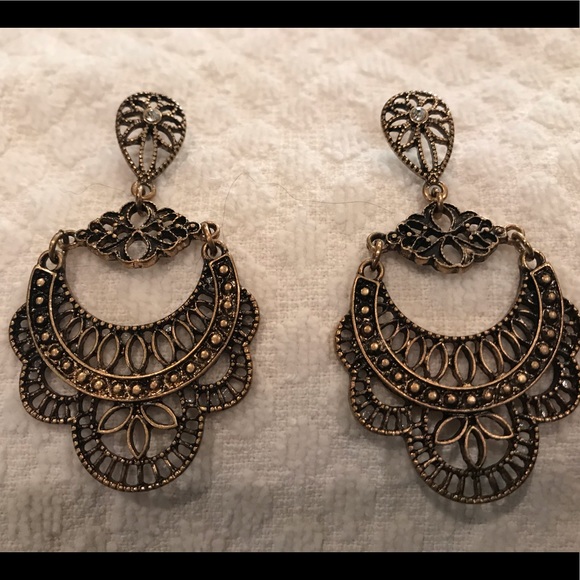 Chic brushed gold dangling earrings with clear glass accent. Can be dressed up or down.