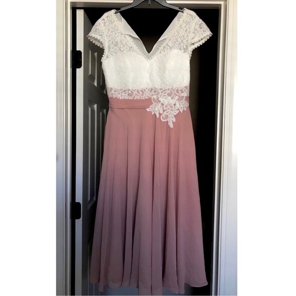 Absolutely stunning brand new formal dress in the color Dusty Rose(Mauve). This dress is seriously gorgeous! My mom bought it to wear for her “Mother Of The Bride” dress to our wedding but the size ended up running a little small so she never wore it. It would be beautiful for ANY dressy occasion! Absolutely nothing wrong with it! Comes from a smoke free home and I will ship it out to you TODAY! ♥️