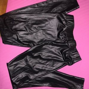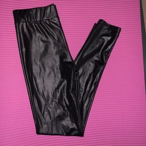 Worn once faux leather leggings cute for a chic look has elastic waistband for comfy!!!! Dress them up or down!!!!