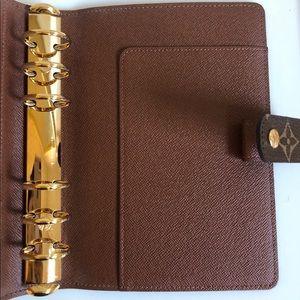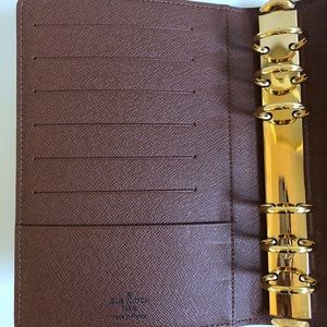 This agenda is in excellent condition, it sat on a desk at home for most of its life. There are no stains, tears, or other signs of wear on the leather. The card slots and small pockets on the inside flap were never used. There is a small amount of wear on the button and metal binder on the inside, small scuffs from natural use. The wear on the binder won’t be seen once you put papers in. This will only come with the dust bag and shopping bag. I paid $660 with tax