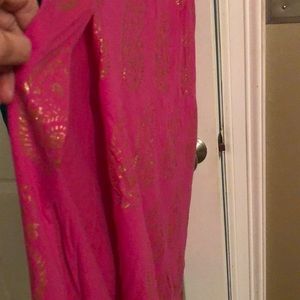 Two Crop top Gorgeous dresses, one Turquoise and one Pink, with gold paisley print.