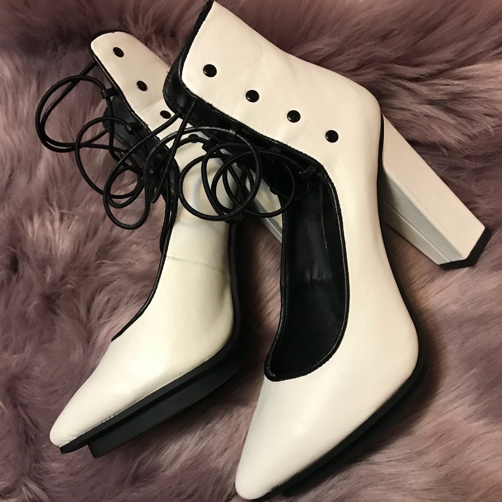 New never used just tried on heels, they’re from forever 21 they have a cute strappy look in the front, they have platform in the from which makes them super comfortable to wear! They have small marks on them not super visible.