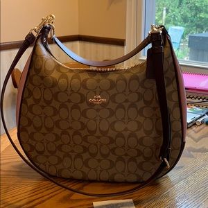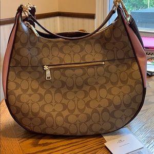 This beauty is an extra large hobo bag! Gorgeous colors for fall a mix of tan, burgundy and gorgeous magenta pink colors! Don’t let these beauties pass you buy! NWOT gift receipt included for proof of purchase! Longer adjustable strap for cross body carry! The shorter strap allows for bag to sit comfortably on your shoulder!! Dimensions are 10.5” tall 14.5” W short strap 8” shoulder drop. Removable strap 22” shoulder drop.