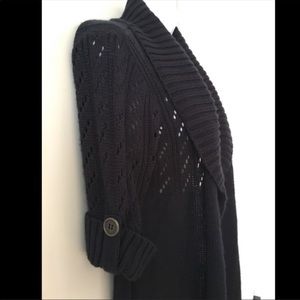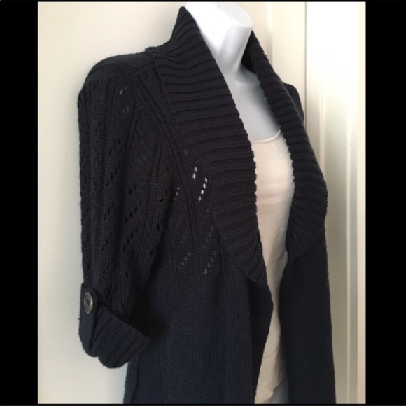 Navy Blue Cardigan (Thick) Large Crocheted arms/ Front opening