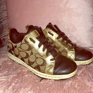 Coach brown canvas monogram with leather sneakers in GUC hardly worn I’ve just had them for a while now.