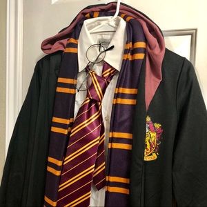 Costume and accessories are included- tie, scarf, glasses and white shirt. These were purchased separately to complete the look.