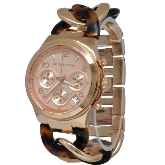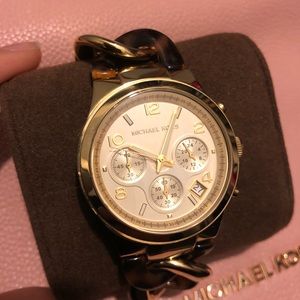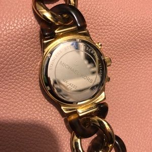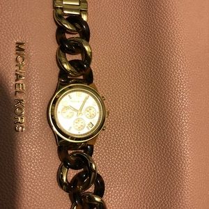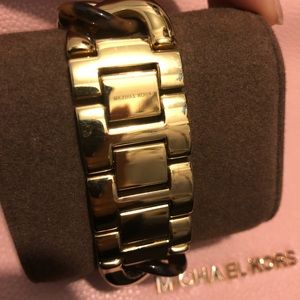 Michael Kors Tortoise Women’s Watch in GUC minor scratches on the goldtone twisted bracelet nothing very noticeable! NEEDS NEW BATTERY!