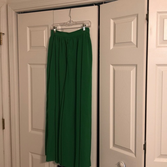 Long high waisted maxi skirt. Skirt is a XS but can definitely fit a small. Skirt is very long. Only worn once