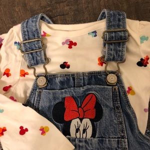 Euc Baby Gap Minnie overalls with Minnie onesie. Adorable outfit in excellent condition no holes or stains. So cute, wish my daughter could still wear it 😞