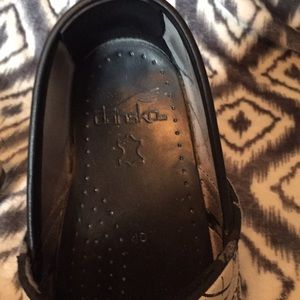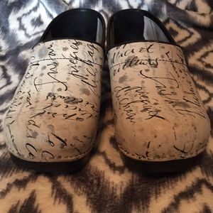 Egg shell base color. They are used but very well taken care of. As seen in pictures they have a Wear where my scrubs rubbed them. I love these shoes. Just wanting to sell to get another pair.