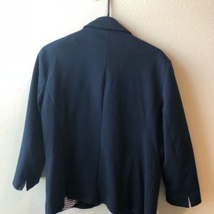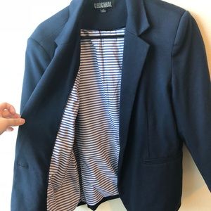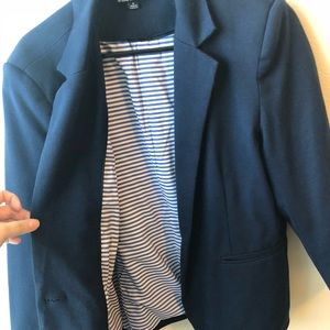 Thick Navy Blue Blazer with silky inside with white and blue strips. Once been worn twice!